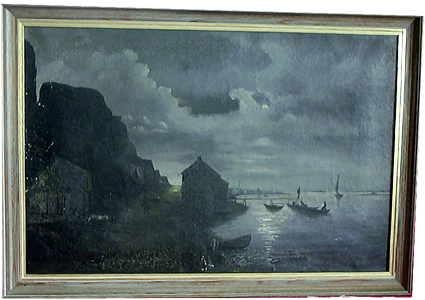 Martin ble tydeligvis dystrere med årene. Dette er signert og grundig datert til 24. august 1890. Det er svært detaljert i det mørke partiet til venstre, men detaljene er vanskelig å skjelne selv på originalen i godt lys. Dette var kanskje ikke det bildet han var mest fornøyd med. Himmelen, skyene og månen har ikke den realismen oldefar synes å ha etterstrebet.