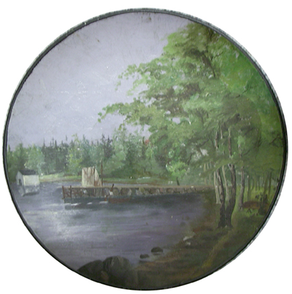 Dette fatet - eller lokket - er av metall og er trolig et tidlig arbeide av Martin. Det er ikke signert og ikke påført noe årstall, men motivet er trolig fra Apenes og stranda nedenfor Sølvkrona. Jeg har fått det av min onkel Reidar Thorkildsen - barnebarn av Martin.